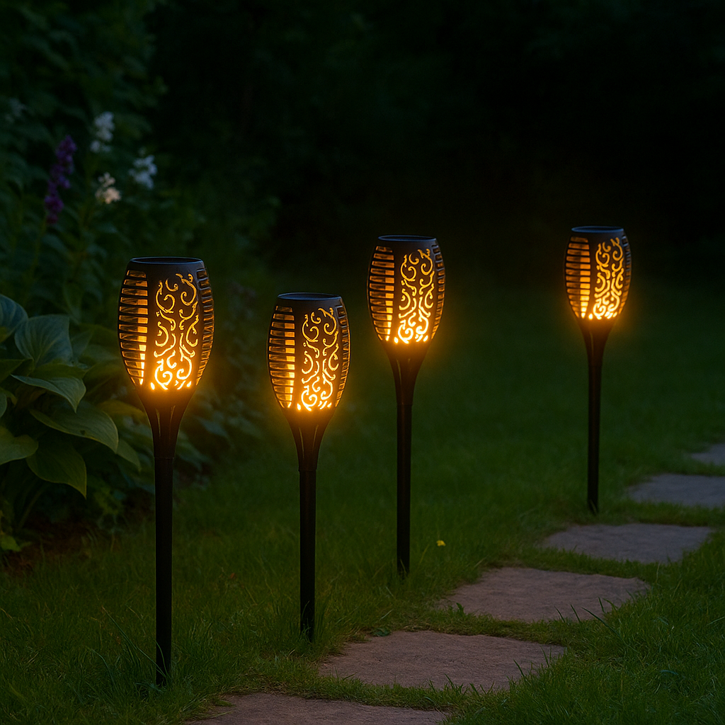 اگر میخواهید باغ یا باغچه ویلای شما در شب جلوهای خاص و زیبا داشته باشد، سان پک ۴ عددی بهترین انتخاب است. این مجموعه شامل چهار عدد چراغ خورشیدی طرح شعله است که نور آن جلوهای شبیه به شعله واقعی دارد و فضای شما را گرم و دلنشین میکند.