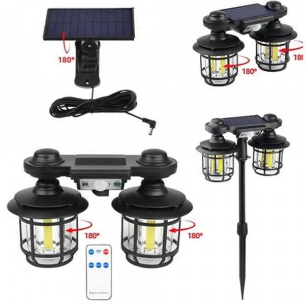 چراغ خورشیدی باغچه ای سنسوردار مدل JD-2217 | چراغ دیواری و باغچه‌ای 192 COB ضدآب IP65